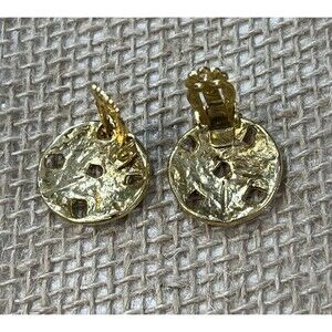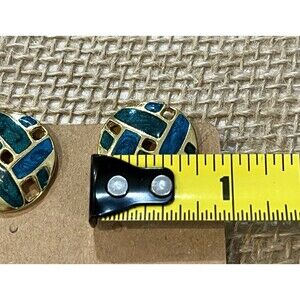 Goldtone Vintage Clip On Earrings Enamel Basketweave Round Vintage