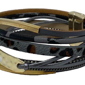 A wild take on the strappy bracelet design. Dress up anything with a little animal flair!