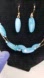 Gold-tone Wire Multi-Row Illusion Blue Beads Necklace, matching Earrings 18+2.5"