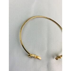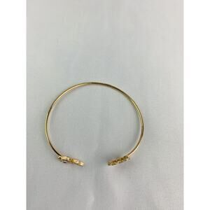 Goldtone and Rhinestone Leaf Design Bangle Bracelet Open Adjustable
