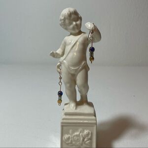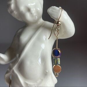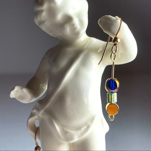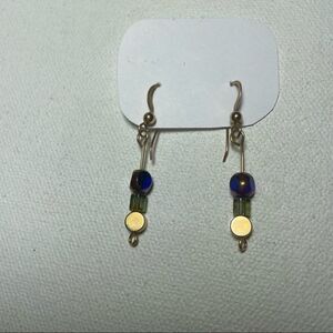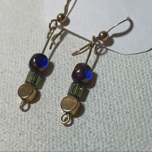 Beautiful earrings with cobalt blue, celadon green and gold beads created by an artist.