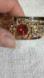 Goldtone filigree red ♥️ crystal 🔮 cuff bracelet