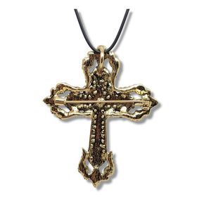Gold tone multicolor Crystal Cross Brooch Pendant