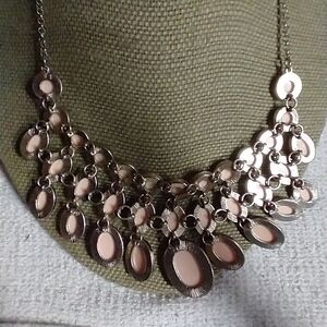Goldtone pink faceted runway statement necklace