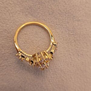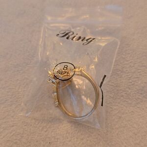 New, never worn Pretty custome jewelry ring Gold tone Sparkling glass stones size 8 CN
