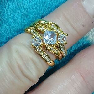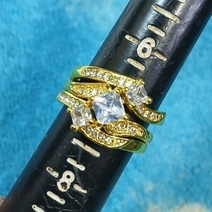 Goldtone wedding engagement 3 ring set cubic zirconia size 7