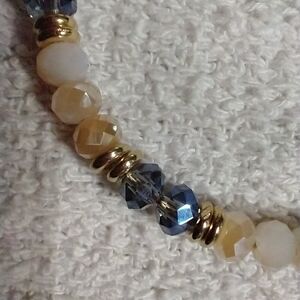 Goldtone wire bracelet adjustable blue yellow faceted beads