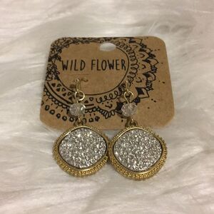 Brand new pierced earrings. These earrings are gold town with bling crystal drops. Be earrings have a 1 ahalf inch drop. They measure approximately 3/4 of an inch wide by three-quarter of an inch tall. Lead and nickel compliant.