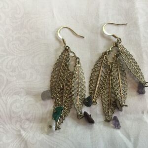 Goldtone Fish hook wire pierced earrings each have 4 feather drops with tiny stone accents. these pretty earrings have an overall drop of 2 1/2”. $8 each or bundle 3 of same price for $15 to save.