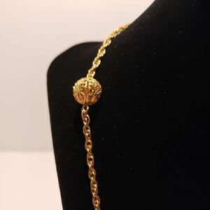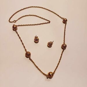 Good tone filagree balls on a necklace and matching post earrings. Necklace is 25" in total length.