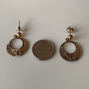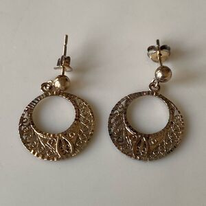 In used condition- some of the gold has worn off. They hang 3/4”. Hallmarked 925.