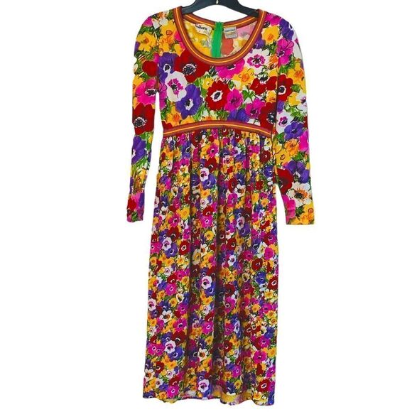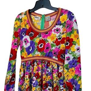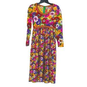 Goldworm Vintage 60s Anemone Vibrant Rainbow Floral Long Sleeve Dress Sz 12 in EUC especially for a vintage piece of this age