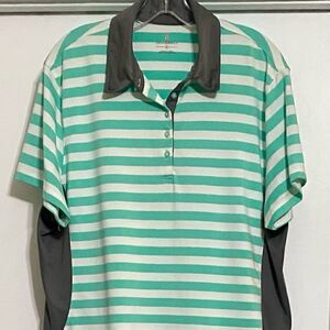 Golf America Women’s XXL Top Green & White Polo Shirt Gray Side Vents Excellent