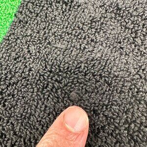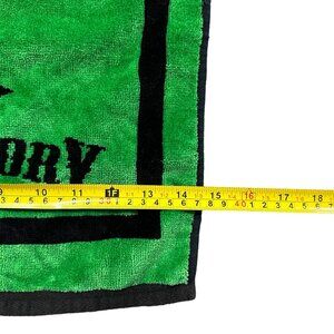 This black and green Golf Bag Towel from the Territory Golf Club is a must have for every golfer. It features a sturdy metal clip to attach it onto your bag, making it highly accessible and convenient. It has a very plush feel and is made in the USA. There is some paint loss to the metal clip. The towel has no rips, tears, or stains but, there are a few pulled strings. Please see the pictures for the full description.