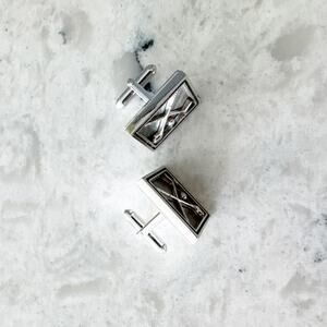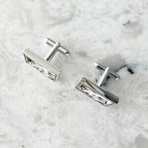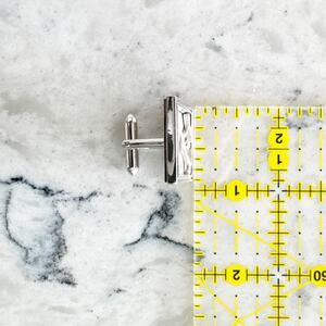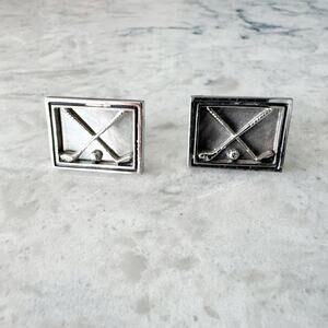 golf cufflinks, men’s accessories, silver tone, sports jewelry, novelty cufflinks, unbranded cufflinks, iridescent inlay, golfer gift, golf club theme, rectangle cufflinks, formalwear accessory, unique cufflinks, classic men’s style, retro fashion, athletic motif
