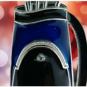 Silver-Plated golf bag with red Santa hat xmas ornament made with Swarovski Element. by Harvey Lewis