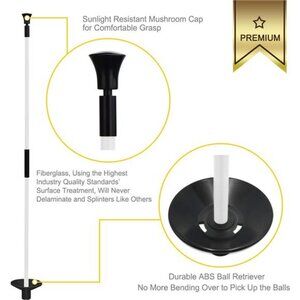 🧿UNIQUE- Flagpole designed with Ball Retriever, allowing golfers not bending down to pick up golf ball anymore, but just lift up the pole to get the balls.