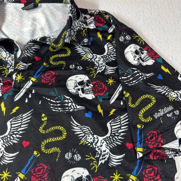 Golf Gods Lg Short Sleeve Polo All Over Print Tattoo Style Graphics Snakes Eagle