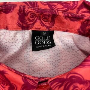 This is a pre owned Golf Gods Medium Monkey Pattern Red Short Sleeve Golf Polo Shirt. This item is in great condition with minimal or no signs of use.