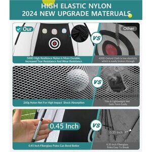 🧿⛳【2024 NEWLY UPGRADED MATERIALS】The newly upgraded golf net is carefully crafted by experienced golf experts. Adopting 260g nylon net that can easily withstand strong shooting without any signs of wear and tear; Made of 500 high elastic nylon cloth, durable and wear-resistant, reducing noise effectively, friendly to pets, neighbors, and children; A 0.45-inch fiberglass rod can bend better. The latest version of golf chipping net design can better withstand the test of time.