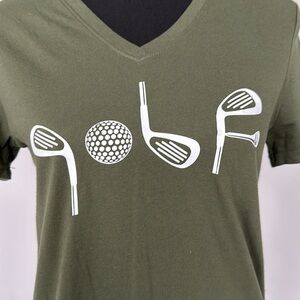 "Golf" Olive Graphic V-Neck T-Shirt Sz SM