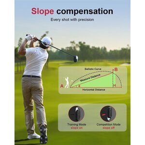 * Slope & Tournament Mode: In slope mode, you can measure the current incline angle and display the compensating distance by range finder golf, making it easy for your perfect shot and improving your competitive performance. In tournament mode, you can turn off the slope compensation feature, and the LED light will turn red, range finder allowing you to participate in tournaments legitimately.