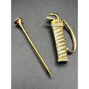 Golf Tee and Bag with Clubs, Gold tone Brooch pin set