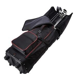 Safeguard your golf clubs with the Amazon Basics Soft-Sided Foldable Golf Travel Bag, the perfect sporting gear companion for golf enthusiasts. This soft-sided travel bag is designed for conveniently transporting a set of golf clubs (clubs not included). Crafted from durable, waterproof 1600D nylon fabric, the bag stands up on its own when holding a set of clubs, providing stability and easy access. Thick padding surrounds the entire bag, ensuring optimal protection for your stored clubs, while multiple zippered compartments offer ample space for extra gear. The hard PE base adds stability, and smooth-rolling wheels provide effortless transport. Included is a storage bag for added convenience. Invest in the Amazon Basics Soft-Sided Golf Travel Bag for a reliable and durable solution to keep your golf clubs safe during travel.