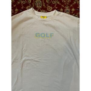 Classic Golf Wang short sleeve t-shirt in white featuring the signature “GOLF” logo in pastel blue and yellow across the chest. Made from 100% cotton for a soft, comfortable fit. Size Medium (M).
