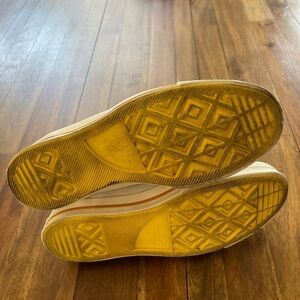 These are in really good condition, sign of gentle wear with a couple scuffs and some dark marks from laces on tongue. Please review all pics and zoom for detail. Unisex. Men’s 5 women’s 7.