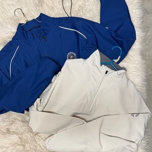 Golf Jacket Bundle Both size large Blue is full zip; tan is 1/4 zip Both new - have logos