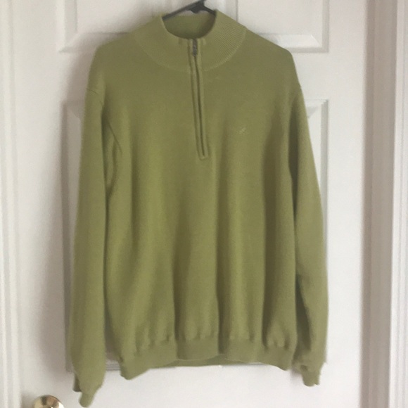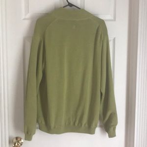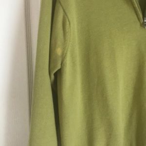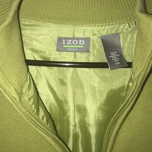Men’s Izod golf pullover lined. Green. Discoloration under right arm area. Cotton.