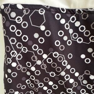 A very pretty black white and gray patterned golf skirt. It has an elastic size waist and a white and black trim around the waist and also has pockets in the front. A really cute design to wear with a white top.