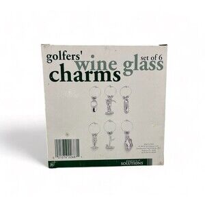 Golfers Wine Glass Charms, Set of 6. Nickel Plated. Perfect for a Dinner Party or Home Bar Decor.