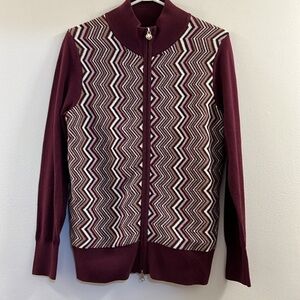 Golfino knit zip-up golf sweater jacket, Plum color zip-up, in excellent condition, cotton blend, soft and comfortable, double zipper, Gilet Femme Performance Bordeau