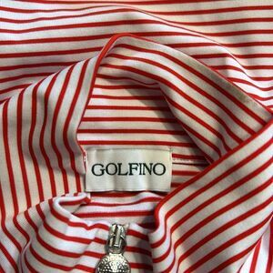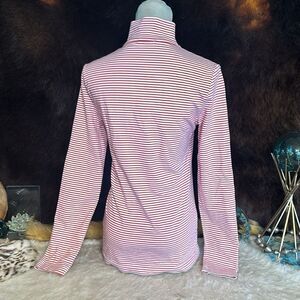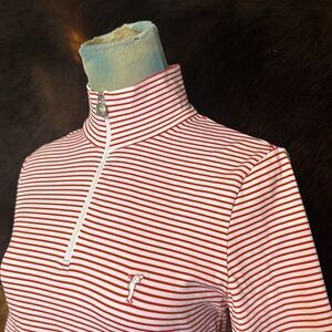 Great condition, red and white striped shirt with a zipper pole closure in front. This measure is 16.5 inches to pit and is approximately 25 inches long.