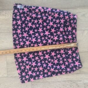 This stylish skirt features a vibrant pink star pattern on a classic black background, perfect for adding a pop of color to your wardrobe.