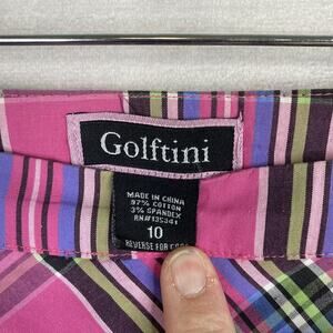 Golftini Skort Womens 10 Pink Plaid Golf Skirt/Shorts Side Tie Zip Pickleball