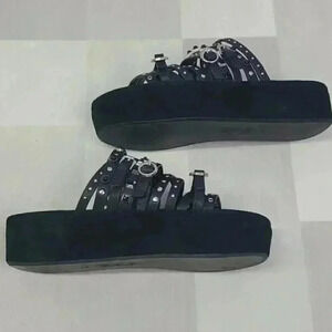 Golo Free People Naomi Flatform Studded Black Leather/Suede Sandals Sz 10