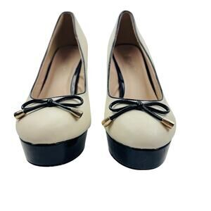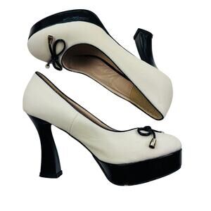 Gomax Cream Patent Black Bow Retro Vibes Office Siren Heels Women's Size 8.5.