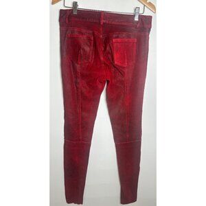These red leather pants from Gomez-Gracia offer a bold fashion statement for any wardrobe. Crafted for comfort and style, they provide a unique look. Stretch leather leggings. Treat them as jeans for casual outings or dress them up with heels with a great top!
