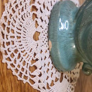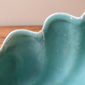 Vintage Gonder Original pottery piece made in the 40's-50's in a beautiful green/turquoise color. Has chip on the bottom edge, other area at the top edge noted in pictures is not a chip or crack it is defect when made. Measures approximately 8 x 7.