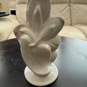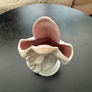 Gonder Pottery vase. Blue pearl color, pink inside. No chips!