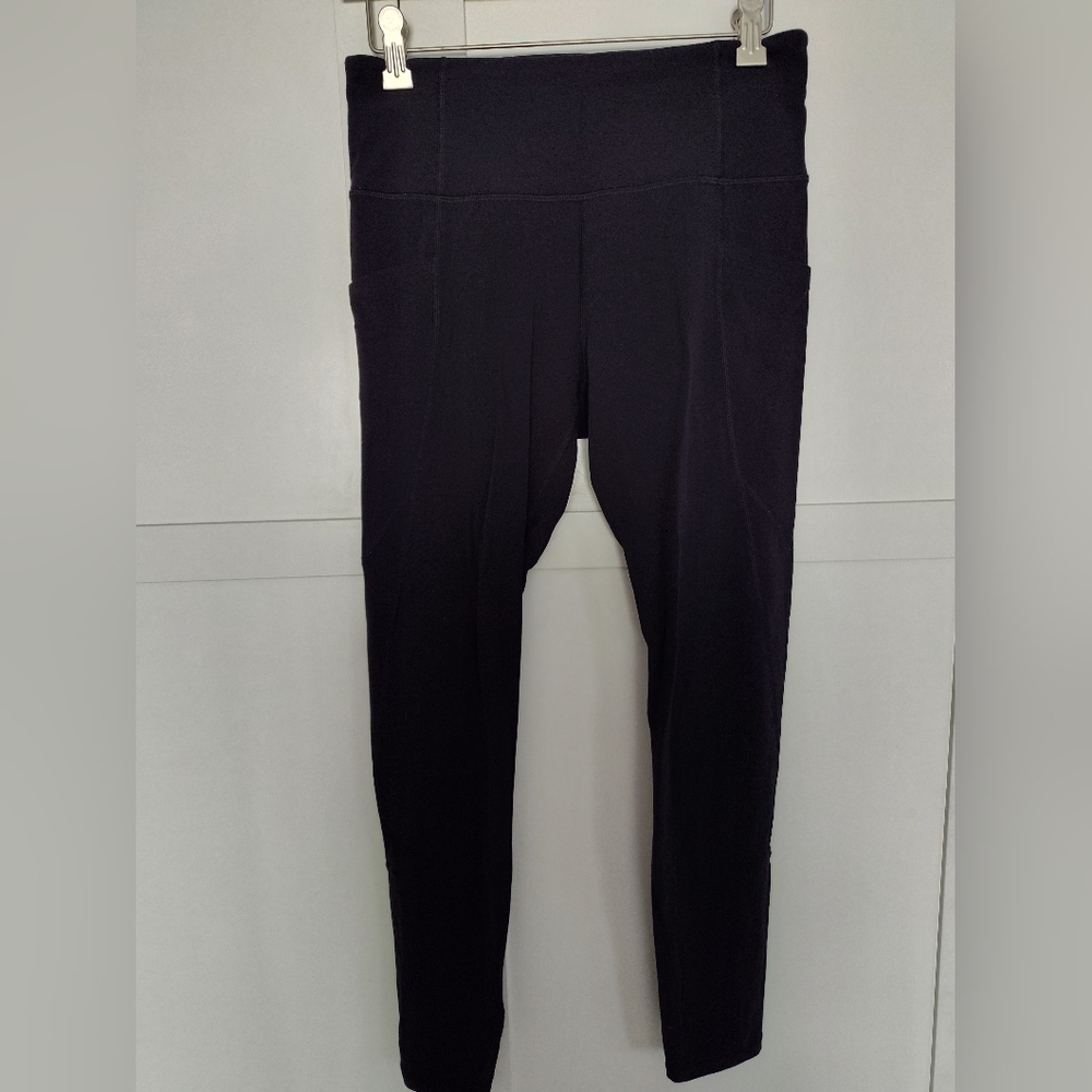 The Athleta Bundle includes leggings (long) with a stash pocket and stash pocket Powervita (crop) situation in size medium. These black leggings are perfect for women who wear a size medium and are designed for activewear occasions such as gym training, yoga, and running. The long and crop style features a pocket for added convenience, making them suitable for various activities and needs during workouts.