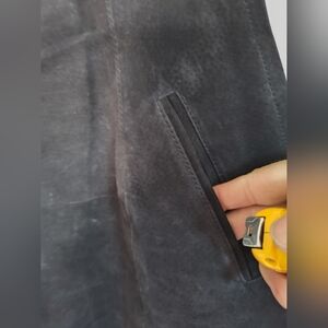This vintage 1980's Wilson suede straight skirt in size 10 is a timeless piece that exudes classic style. The black color adds a touch of sophistication, making it versatile for various outfits. With its original materials and design, this skirt is a must-have for any fashion-forward woman looking to add a retro flair to her wardrobe.