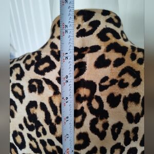 Chico's Size 2 One Button Cardigan Brown Tan Leopard Print V-Neck Long Sleeves Stretch