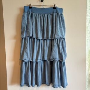 Goo Goo For Bar III Plus Size Tiered Chambray Ruffle Maxi Skirt Size 18W