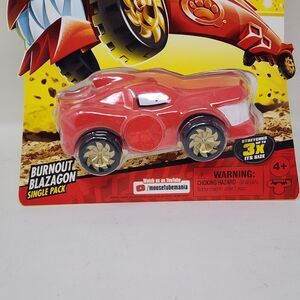 The Goo Jit Zu Squishable Car Burnout Blazagon is a red toy vehicle from the Goo Jit Zu Mobiles franchise. It is a hero character in the form of an action figure model. Made in 2020 or later, this original item is a collectors' favorite for fans of action figures and toys.