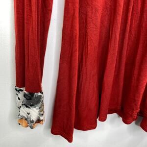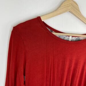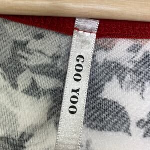 Goo Yoo Red Long Sleeve Floral Print Trim Shirt Women's Size Medium/Large M/L