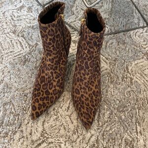 Good American 110mm Icon Faux Suede Leopard Stiletto Ankle Boots Size 8.5